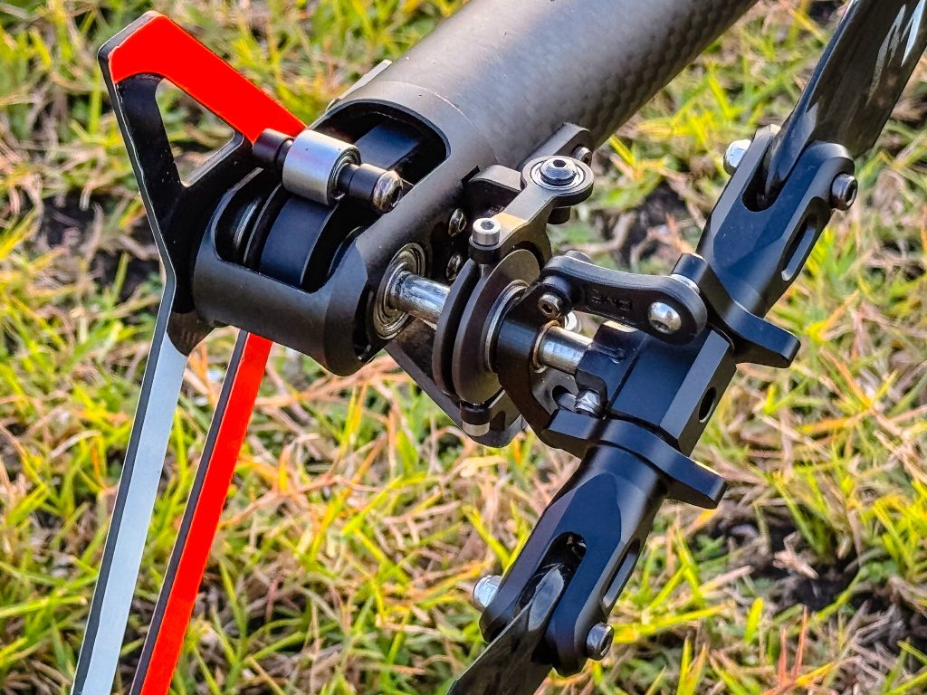 ที่เซ็นเตอร์ฮับของชุดเฮดจะมีแดมเปอร์ให้เลือกใช้ระหว่างยางโอริง Rubber 90° Shore หรือ POM โดยที่ยางโอริงนั้นจะเหมาะกับการบินรอบต่ำเน้นรายละเอียดในการควบคุมเฉกเช่น F3C แต่สำหรับ POM นั้นเหมาะกับการบินรอบสูงที่เหมาะกับการบินแบบ 3D เท่าที่ได้ลองรอบประมาณ 1500-1600 ฮอก็มีอาการสั่นให้เห็นแล้วแต่ในรอบ 2000-2200 ฮอจะมีอาการบินคมมากๆ ดังนั้นเราต้องเลือกเซ็ตอัพให้ถูกกับสไตล์เราบินครับ